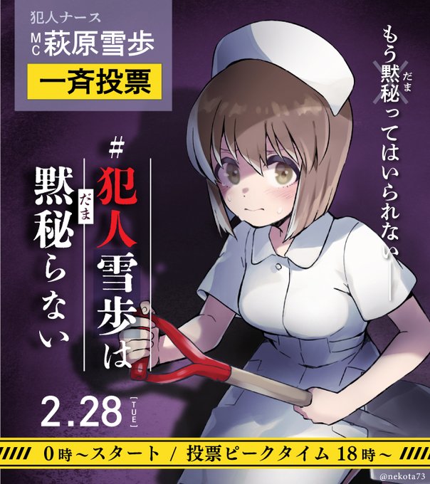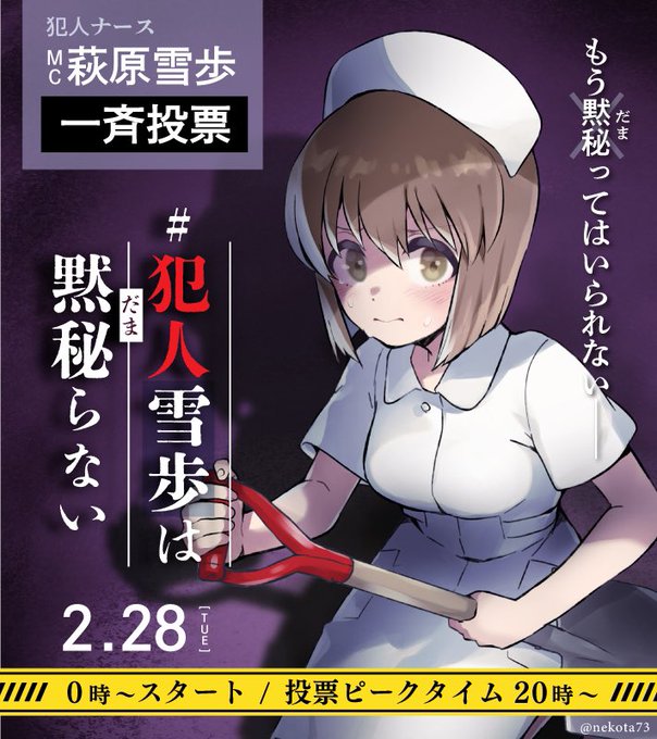 ❄️犯人ナース雪歩、最後の一斉投票❄️ #犯人雪歩は黙秘らない 28日 0時〜開始!(終日) 【ピークタイム 20:00~23:59】 キャスティング投票 第1回投票は02/28(火)23:59まで! 雪歩への応援最後まで宜しくお願いします! #犯人ナース雪歩 #穴掘って埋めちゃいますぅ #ミリオンキャスティング
