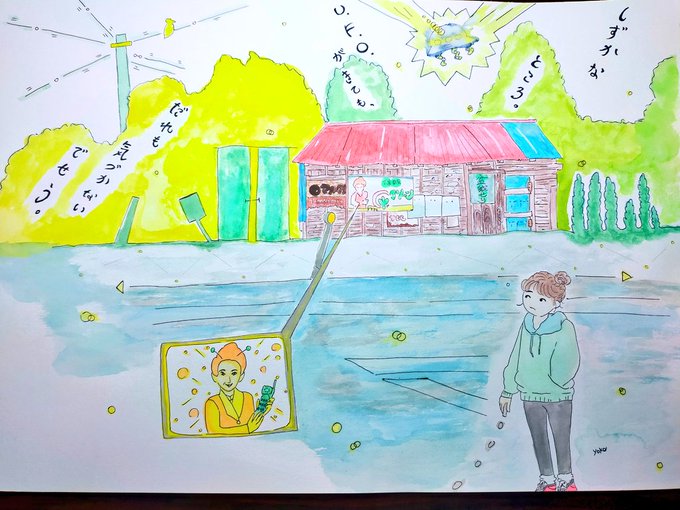 色を塗らない方がよかったかも。 絵って難しいですね。 なんだかほのぼのファンシーに なりました。 #今月描いた絵を晒そう #イラスト #千葉県 #田舎の風景 #空き家 #廃墟 #ボロ屋 #過疎 #通り過ぎる風景 #知っているはずの風景 #落書き #ノスタルジックな風景 #昭和レトロ