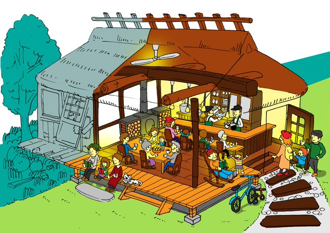 空き家の古民家を、コミュニティカフェにリノベーションしたビフォーアフターのイラスト(制作時間5H)。完成です🎵 #みんなで楽しむTwitter展覧会 #絵描きの輪 #美術ネットワーク #空き家 #リノベーション #ストックイラスト #絵描きさんと繋がりたい #イラスト好きな人と繋がりたい