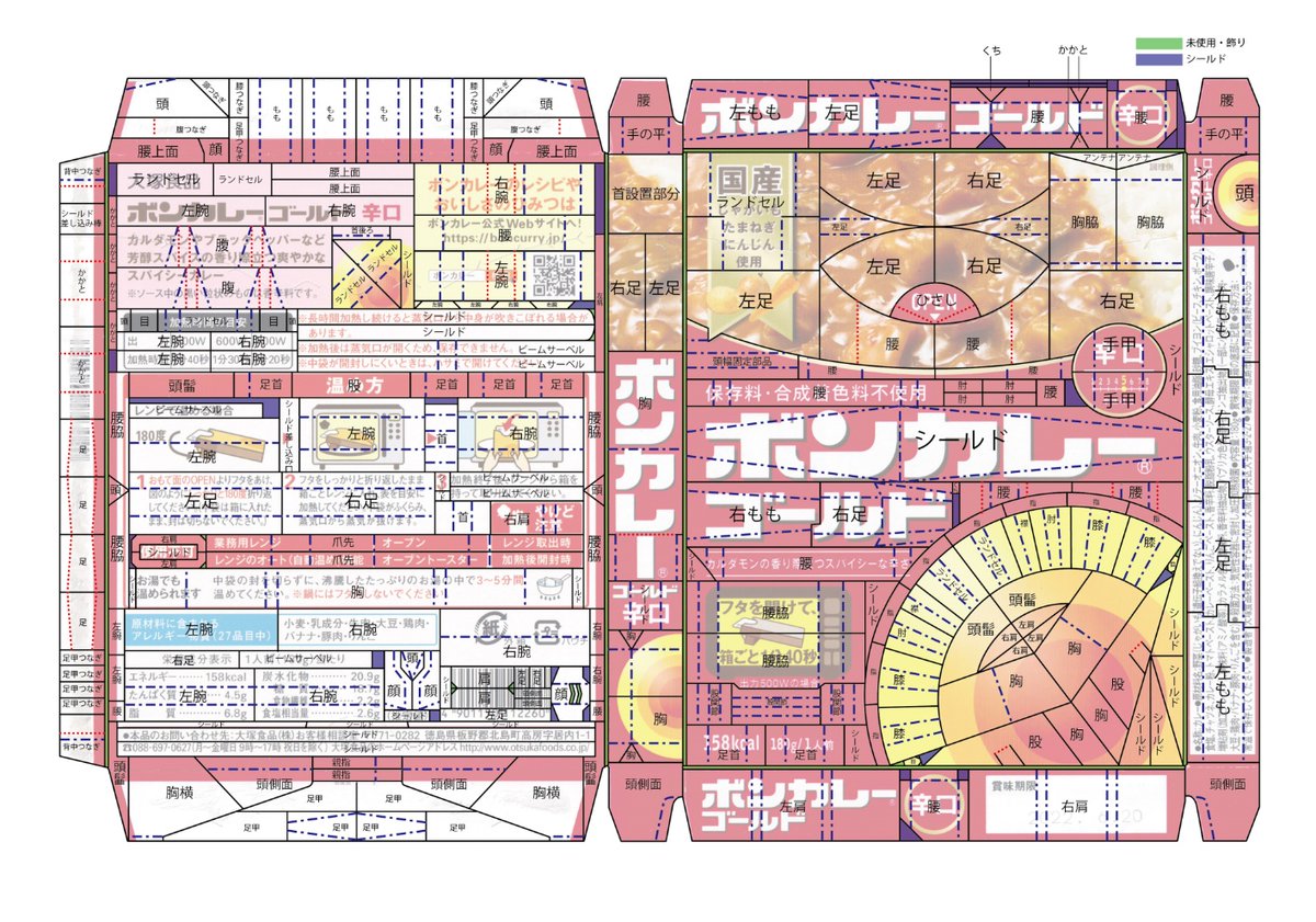 「ボンカレーガンダム<試作3号機>」図面ができました!余った細かい部品はシールド裏の装飾に使っています。次回は中辛で作る予定。 #大塚食品 #ボンカレー #ガンダム #空き箱 #空き箱アート #パッケージクラフト #ペーパークラフト #空き箱工作 #boncurry #gundam #packagecraft #papercraft