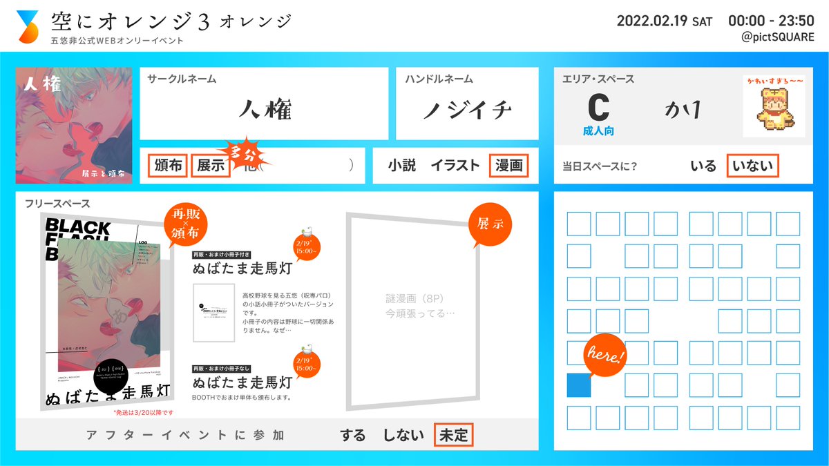 空オレ3は新刊のサンプルの展示のみです 本の発行は後日になります 0時に展示できないと思うので用意ができ次第ツイで案内します!よろしくお願いします~🥳 #空オレ_0219 #空オレ_0219_展示