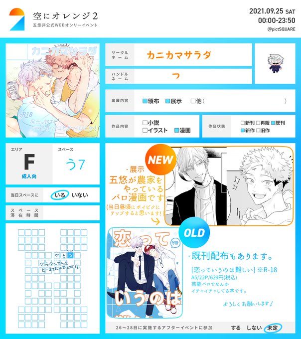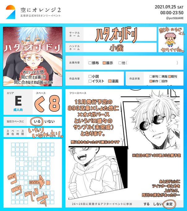 【空オレ2】五悠モデルパロイラスト本 通販情報です。 サンプルはpixivに上げてます★ pixiv.net/artworks/92771… #空オレ_0925 #空オレ_0925_頒布