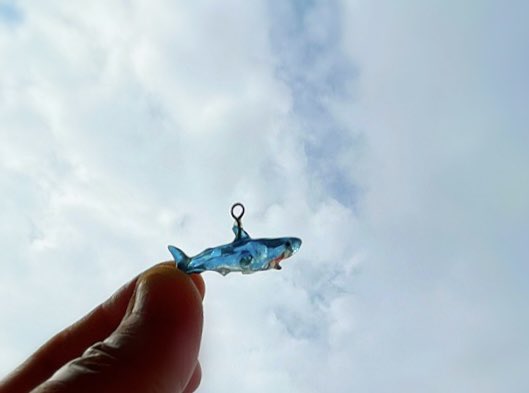 #ズームして見たくなる作品ですっ #空洞レジン ・ウミガメの赤さんが 多くの方に可愛いと言ってもらえたので嬉しくなって ホホジロザメもUPしちゃいました🦈 全長2.8cm 重さ0.3g ウミガメもホホジロザメも こんなに小さくて指先サイズでも空洞! どちらもお口を開けてるところ見て欲しい😆✨