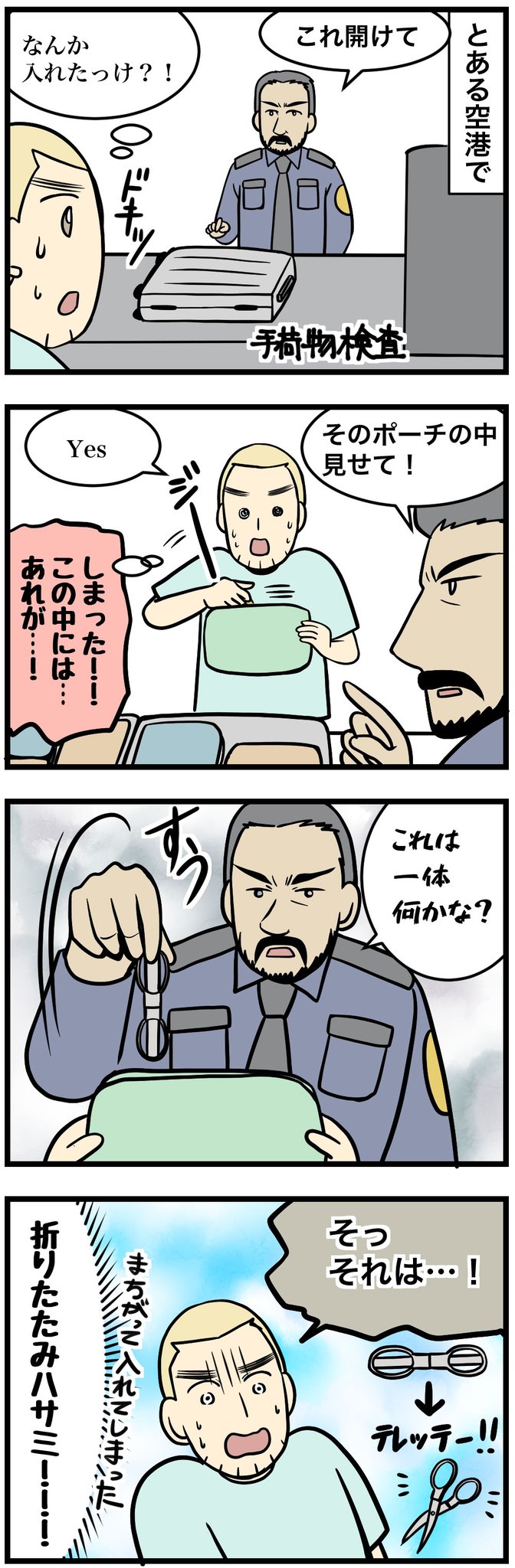 「【続】空港の手荷物検査で没収されたもの」 わざわざ自分の目にあてて全力で否定してきたわ ブログも見てね hikasango.com/archives/11274… #漫画 #漫画が読めるハッシュタグ #コミックエッセイ #絵日記 #4コマ漫画 #絵描きさんと繫がりたい #没収 #空港 #手荷物検査