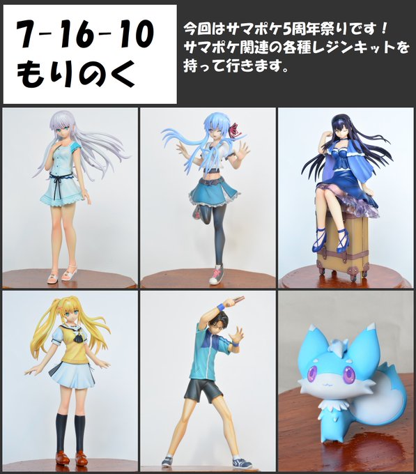 7月30日(日)開催予定のワンフェスに出展します。 サマポケのレジンキットを持って行きます。 卓番:7-16-10 ディーラー名:もりのく ・鳴瀬 しろは 4000円 ・空門 蒼 3000円 ・久島 鴎 5000円 ・紬 ヴェンダース 3000円 ・加納 天善 3000円 ・イナリ 1000円 #WF2023S #WF2023Sおしながき #サマポケ