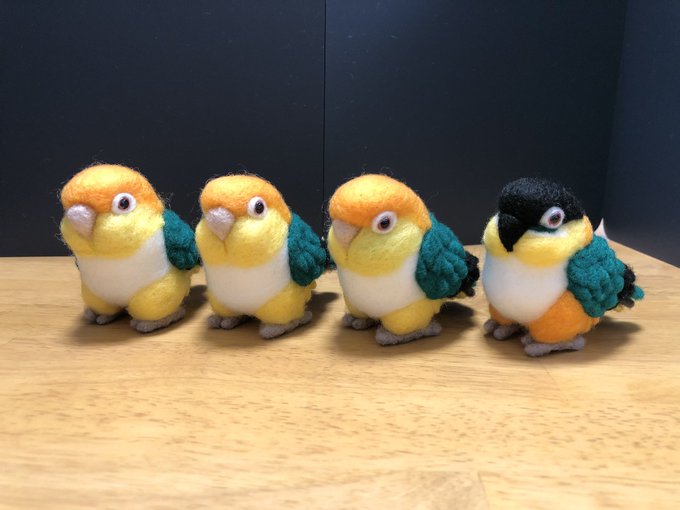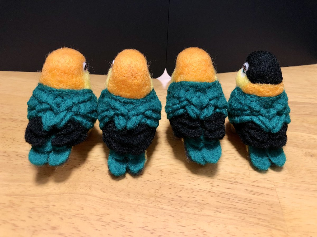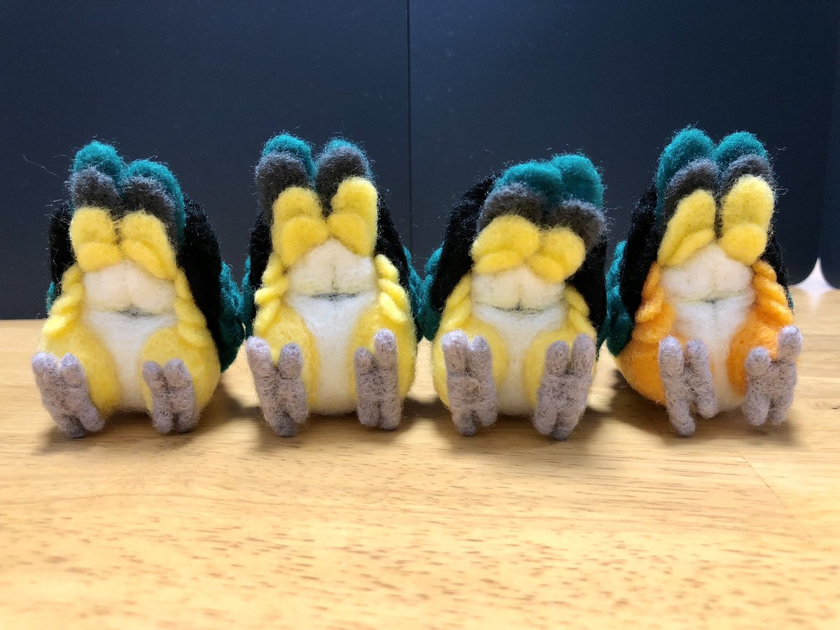 羊毛まる鳥・オキナインコーズ完成。上向いてたり下向いてたりちょっとバラつき出てしまいましたが来年のことり万博で里子に出す予定です(・θ・) #羊毛フェルト #空飛市場 #オキナインコ・ノーマル #オキナインコ・ルチノー #オキナインコ・ブルー #オキナインコ・モーブ