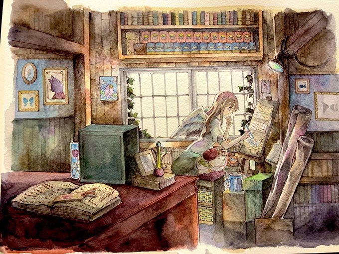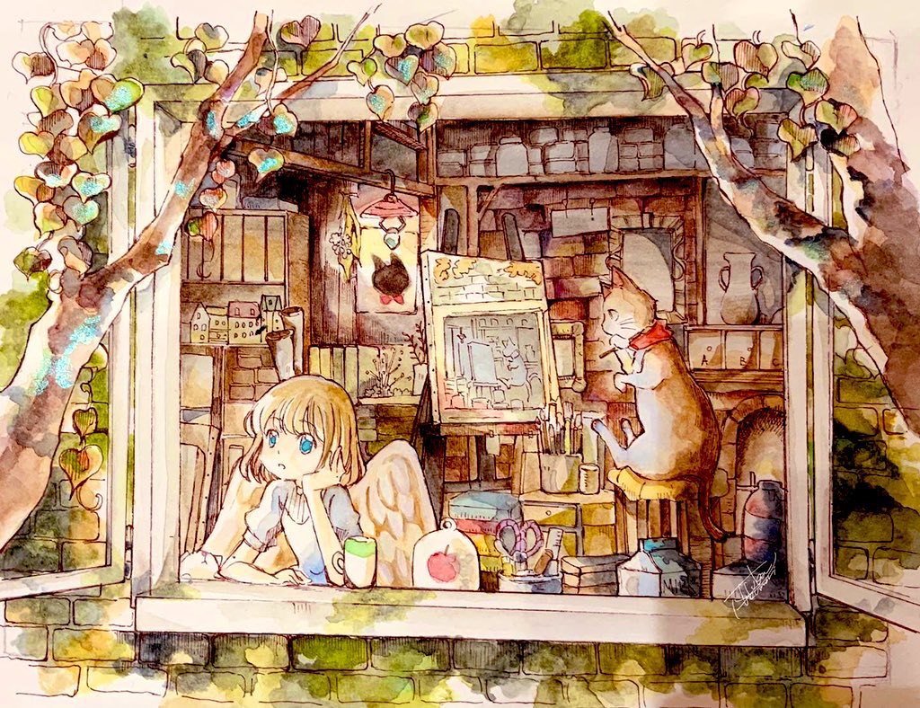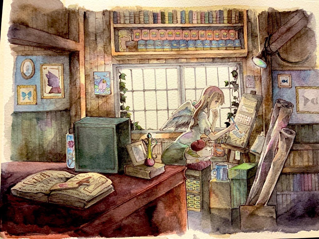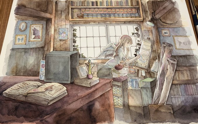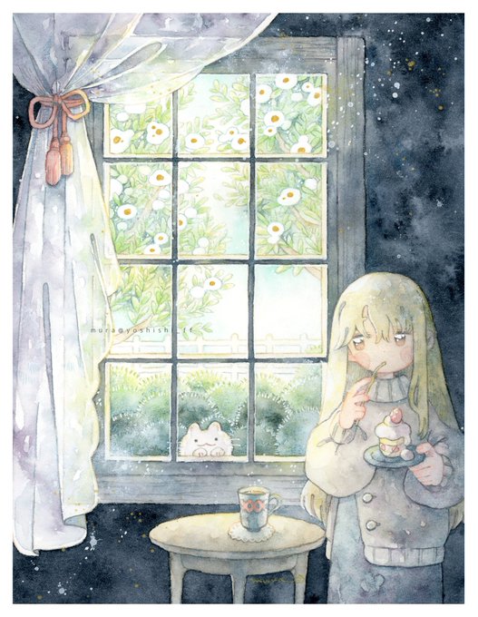 新作4点が完成しました!どれも自信作です!✨ いつもながら時間かかった・・・💦 来月1月のぎゃらりぃ あとさん(@Ato10Gallery )に送る予定です😊 あと1点小さいの作品余裕あったら描くか・・・?🧐 クリスマスイヴなんでケーキ買いに行くか😊 #窓の向こう #透明水彩 #Watercolor
