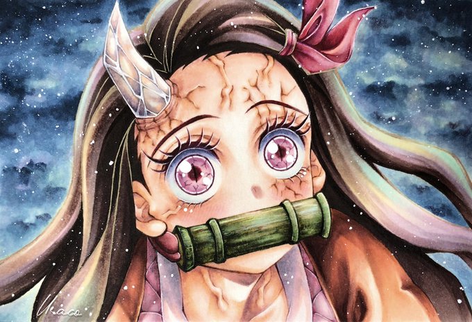 【再投稿】 〜禰豆子〜 鬼滅のキャラまた描いてみたいな…🤔 #鬼滅の刃 #竈門禰豆子 #絵描きさんフォロバ100 #絵かきさんと繋がりたい #絵柄が好みっていう人にフォローされたい #模写 #イラスト