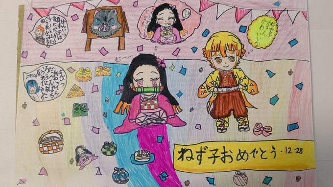 今日のお絵かき 完成 #竈門禰豆子 の誕生祝い 1日余裕をもって準備が出来ました。 ムキムキねずみの声木村昴でビックリだ!!( ; ロ)゚ ゚ #竈門禰豆子生誕祭2021 #ぜんねず #竈門禰豆子生誕祭 #絵描きさんと繋がりたい #鬼滅の刃 #鬼滅の刃遊郭編 #我妻善逸 #イラスト好きな人と繋がりたい #イラスト