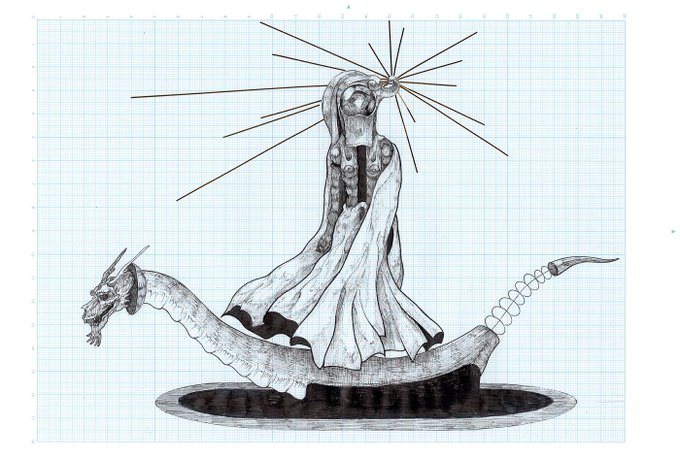 😃 娑伽羅竜王ドローイングver.2😃 娑伽羅龍王さんの龍のクリーチャーバージョンです🐉 文献読み解きをしていくと女性性の方がしっくりとくるかなと考えたバージョンです。 #八大龍王 #立体フィギュアの為のドローイング