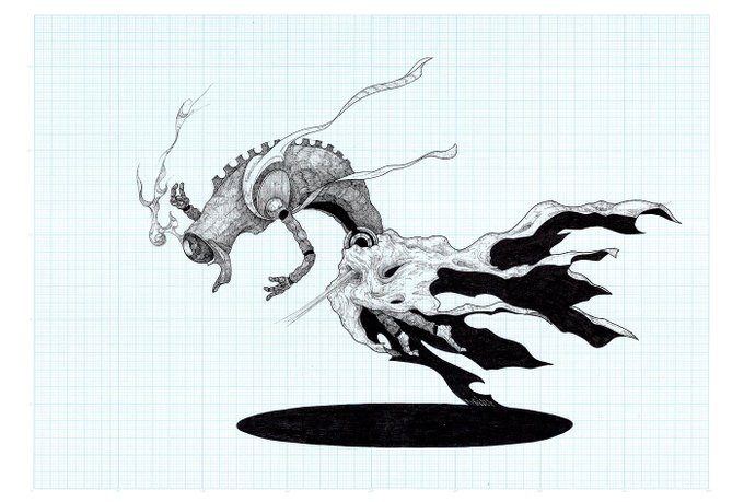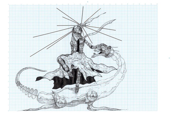 😃難陀龍王ドローイング😃 今年1年をかけて丁寧に立体にしていく予定の龍王シリーズ…。 少し大きめのサイズのドローイングをということでA3サイズとなります。 武人クリーチャーのみのパターンとなります🐉 ふたパターン同時に描いていきます。 #八大龍王 #立体フィギュアの為のドローイング