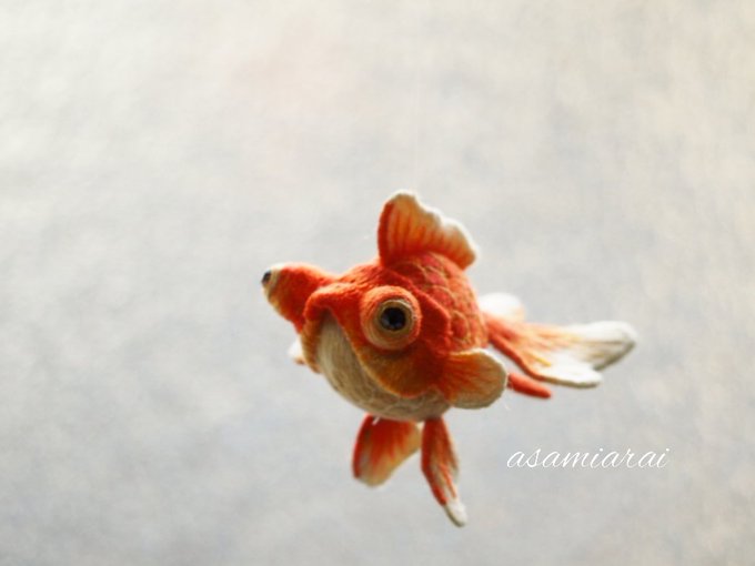 #フォロワー10000以下の一次創作作家発掘フェス 「刺繍で造形する」をテーマに、刺繍で立体の金魚をつくっています。 チビタイプな琉金を近日中に販売予定です✨ #刺繍造形 #立体刺繍 #手鞠金魚 #刺繍 #金魚 #embroidery