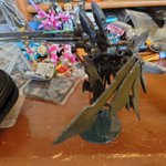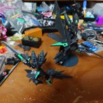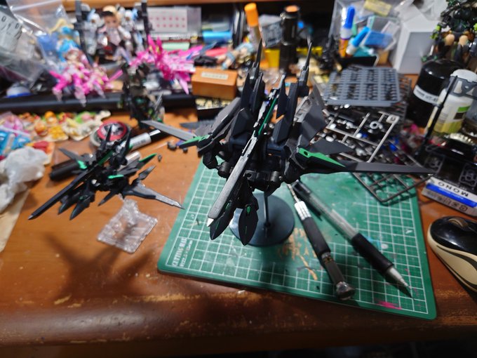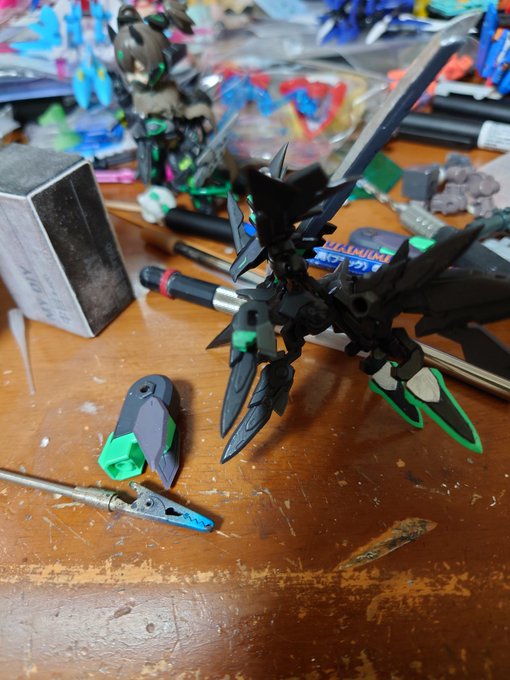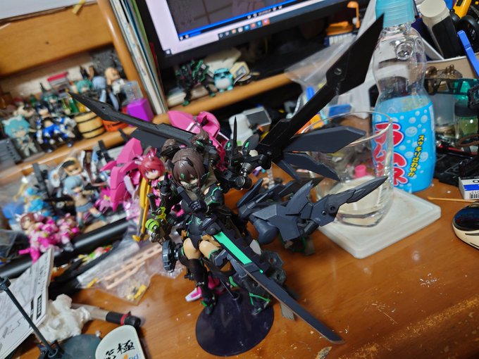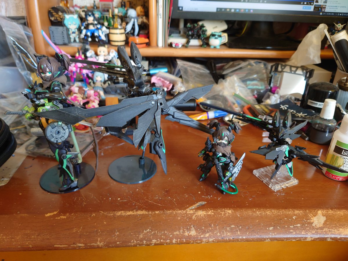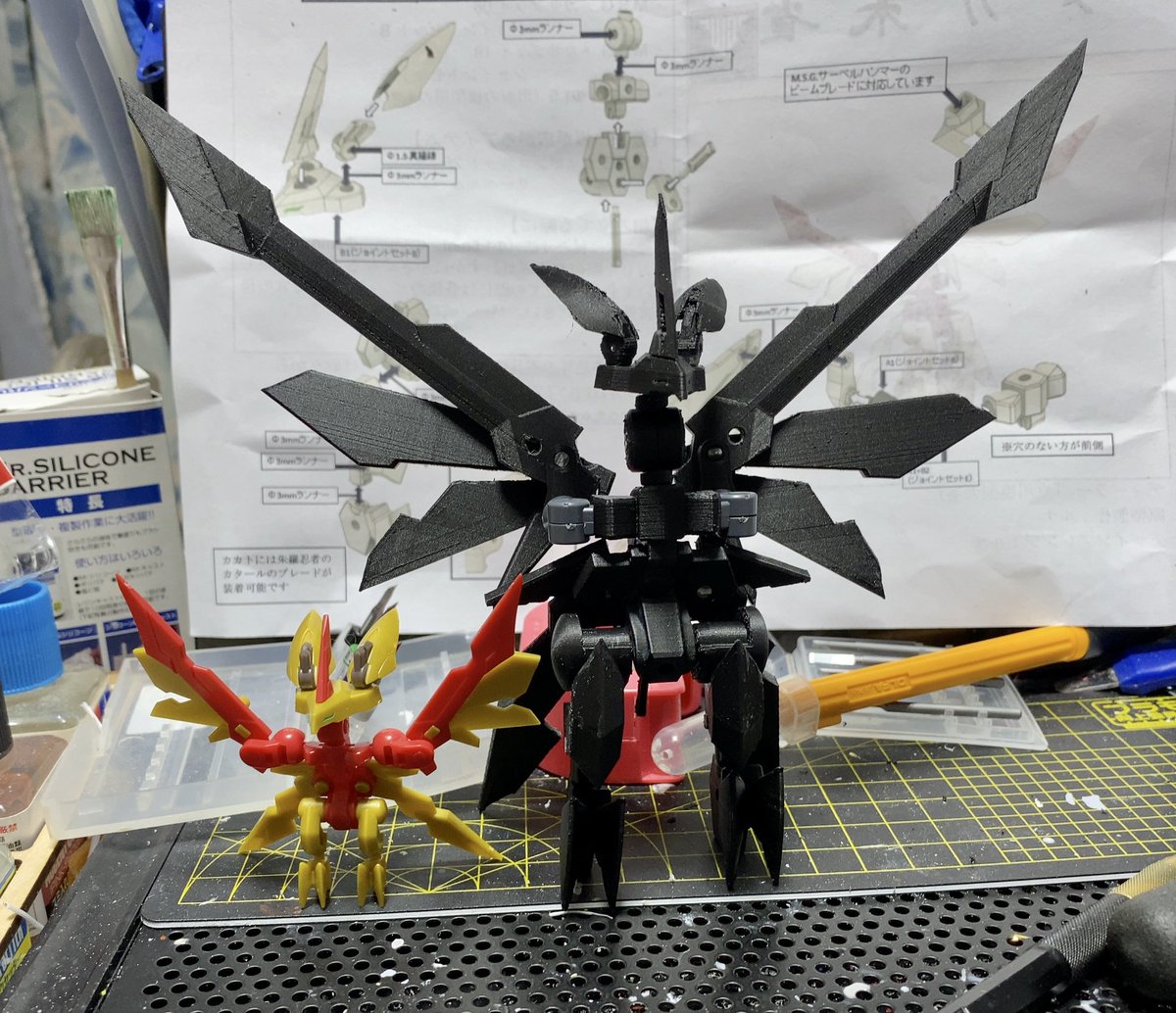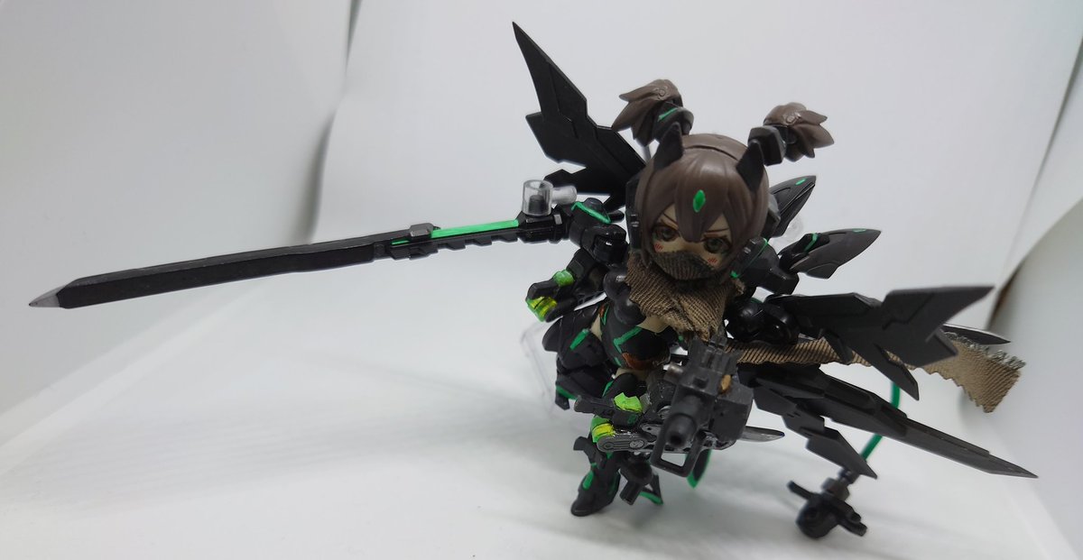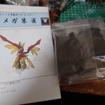 メガ朱雀でハバキリ比較。 プロポーションや各部がメガミサイズに置き換わっているから調整が必要そう。 特に刀サイズが合わないから手持ちの工夫がいるかな。 #デスクトップアーミー #メガミデバイス #立模大ガレキ