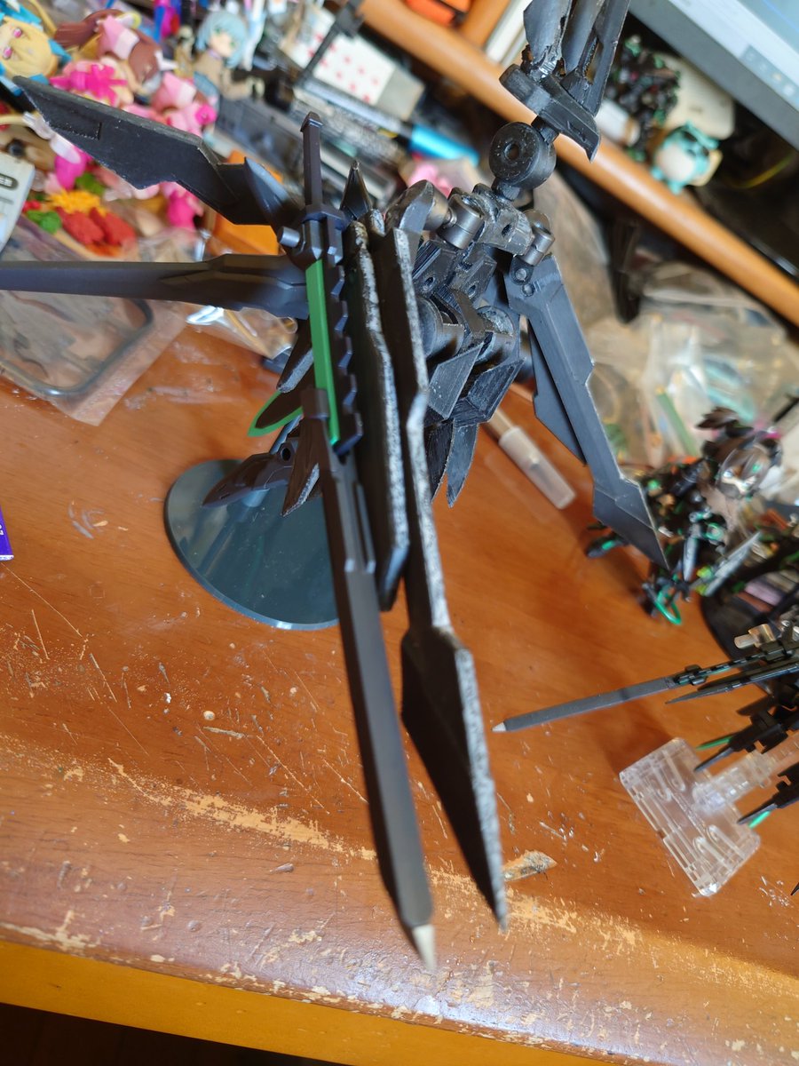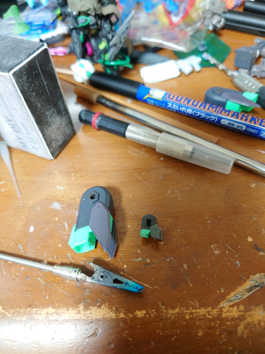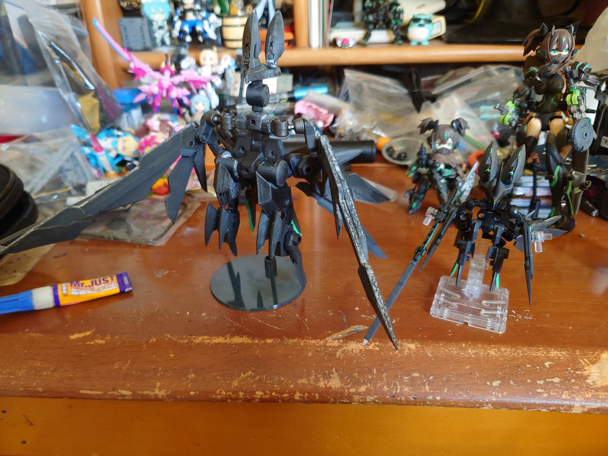 プロポーションチェックのためにパテ埋めした部分や細かいところをマーカーで塗装。 最終的にはサフで段差埋めてから塗装し直すけど色ついてたほうが比較しやすいはず… #デスクトップアーミー #メガミデバイス #立模大ガレキ