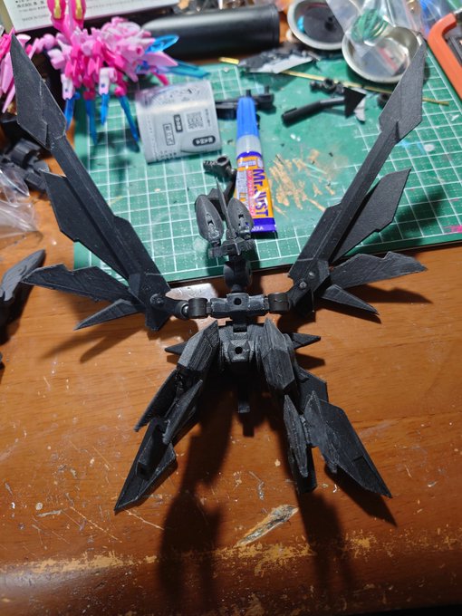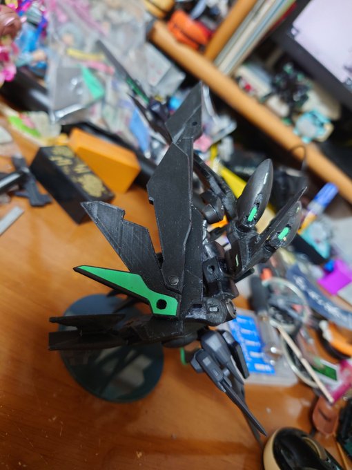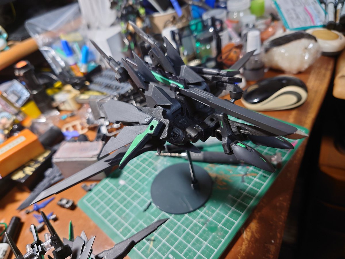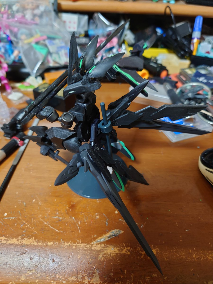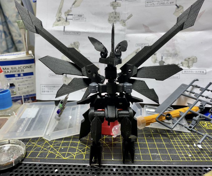 プロポーションチェックのためにパテ埋めした部分や細かいところをマーカーで塗装。 最終的にはサフで段差埋めてから塗装し直すけど色ついてたほうが比較しやすいはず… #デスクトップアーミー #メガミデバイス #立模大ガレキ