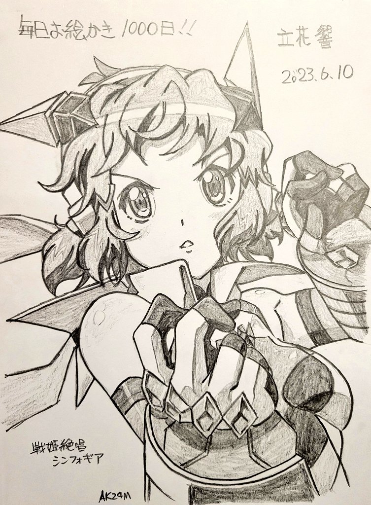 Twitterで #毎日お絵かき を始めて6月10日で1000日となります(*^^*) 途中、右肩骨折で3日間お休みしましたが、何とか続けてきました。 これからもお絵かき頑張りますので応援よろしく‼️ 記念すべき1作目は #戦姫絶唱シンフォギア の #立花響 ちゃんでした(*^^*) #毎日お絵かき1000日