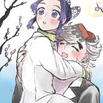 #童しの版深夜の真剣お絵描き60分一本勝負 #童しの お題「イルミネーション」 遅刻申し訳ありません! 🦋ここにもキラキラのイルミネーションがありますよ 童磨の七色の瞳を指して笑うしのぶさんと驚く童磨 キラキラ光っているのは恋をしているから