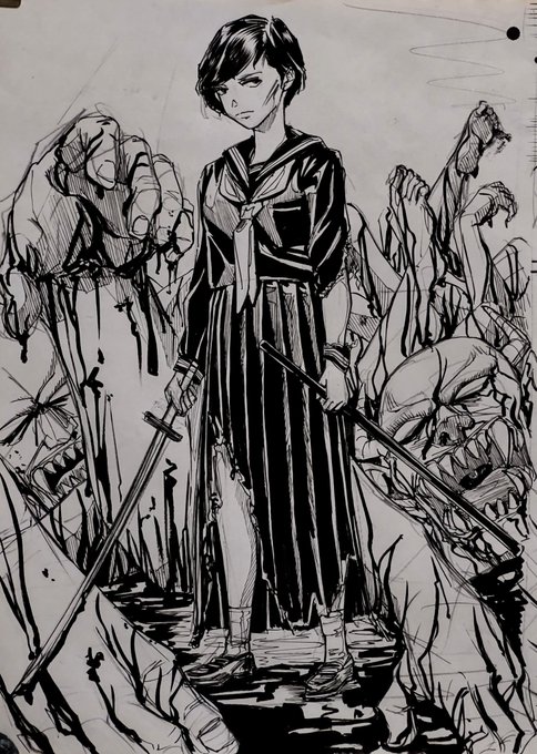 #童子切安綱 #鬼切安綱 #天華百剣 #天華百剣お絵かき部 #天華百剣ありがとう ※右リメイク 「どうした童子切?」 安「ウチがその水着いつもの格好とさして変わんないじゃんって言ったの」 童「鬼切ひどい!」 「どうどう」