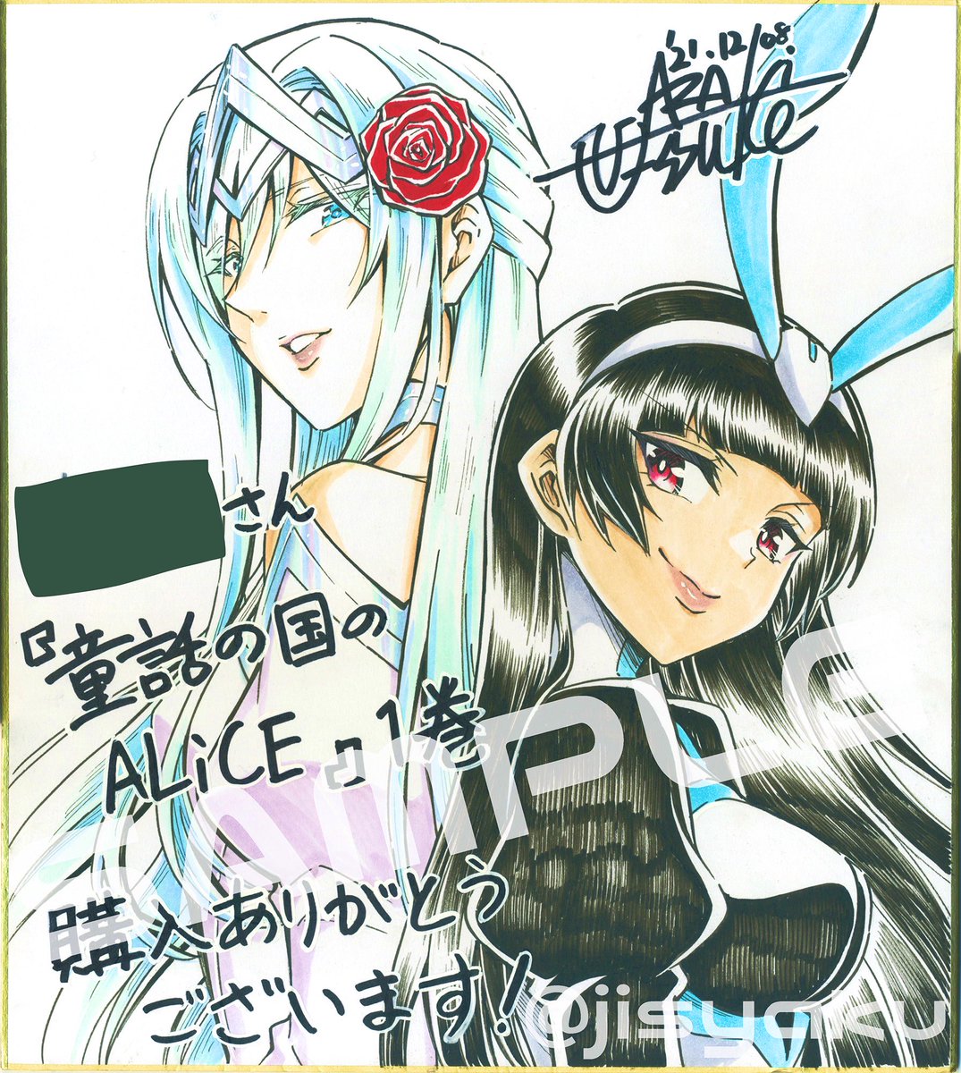 届いたようなので改めて 【#童話の国のALiCE】1巻発売記念キャンペーン色紙❗️ 『アリス&各話主人公』で3枚描かせていただきました たくさん感想ありがとうございました〜 今後もアリス達をよろしくお願いしまーす✨ 🌟ALiCE1巻は各電子書籍サイトで発売中です! gekkan-bushi.com/comics/alice/