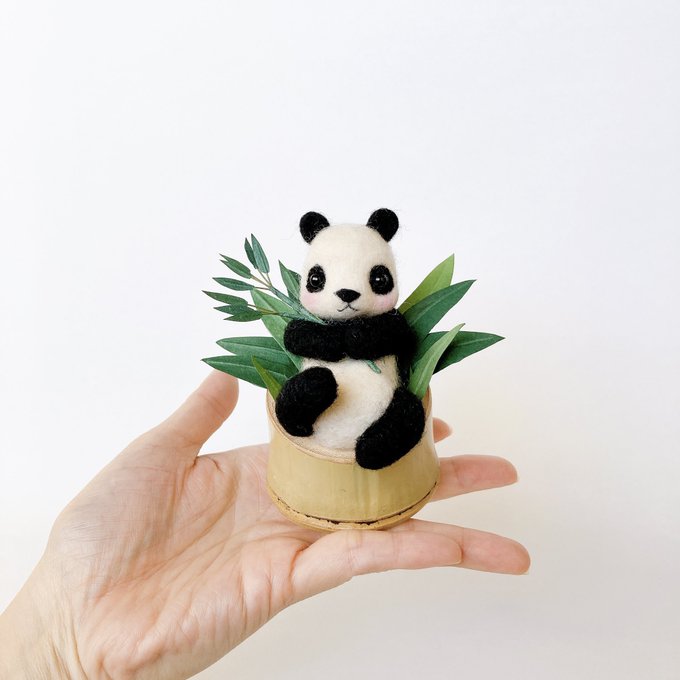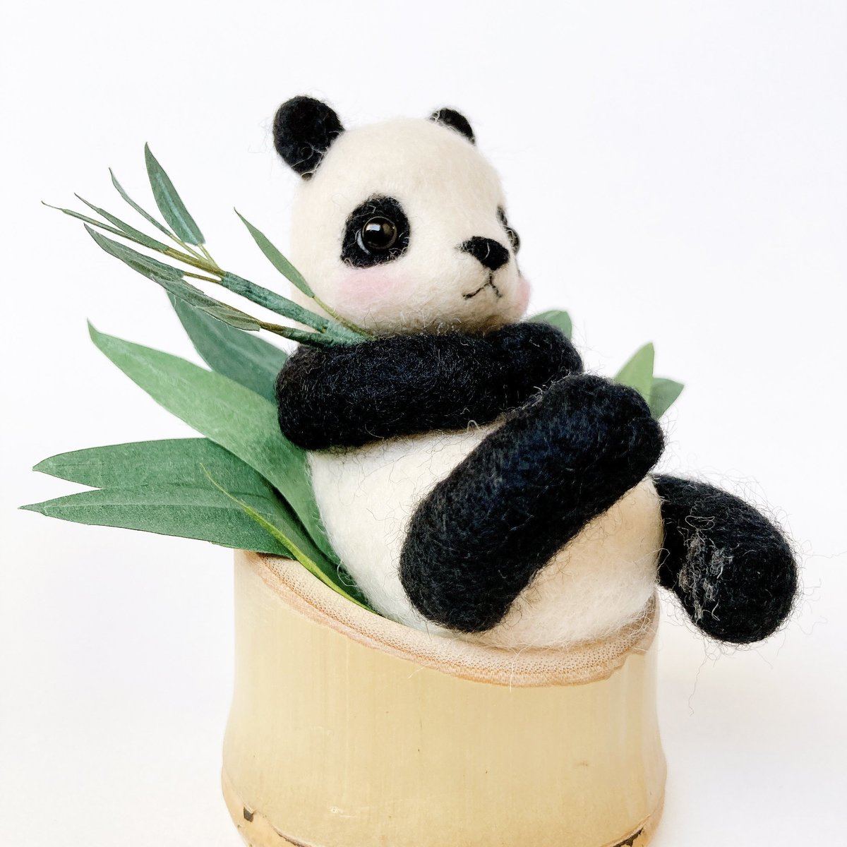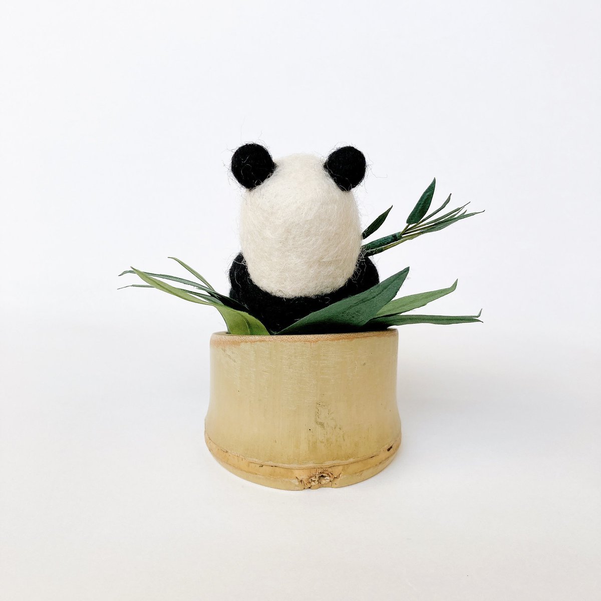 新作の販売はじめました^^* よーく見ると ほんのり肉球も♪ Aki Ako'S GALLERYさんの[送料無料] ころりんパンダ はまっちゃった!!(竹) 羊毛フェルト置物 minne.com/items/35653152 #minne #minne_new #羊毛フェルト #パンダ #竹