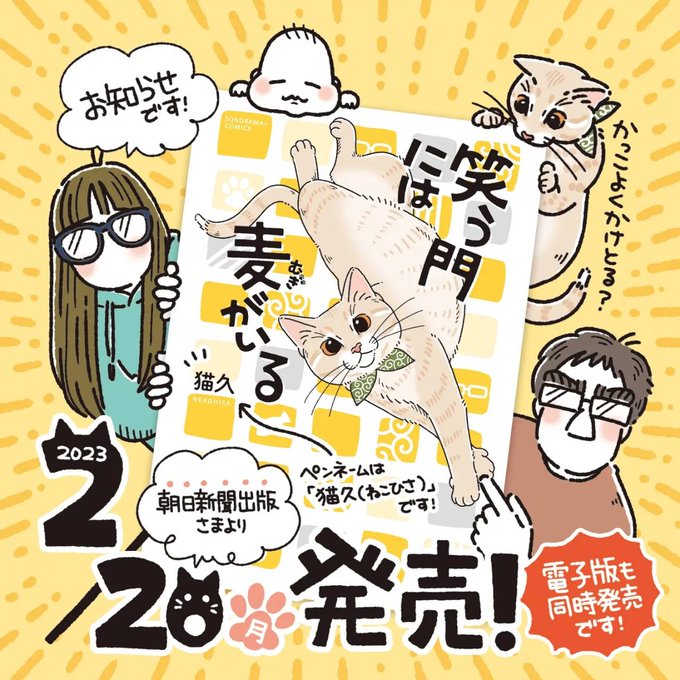 妻のInstagramでも紹介しましたが、 書籍がついに発売されます! 2/20までの約1ヶ月!僕も待ちきれません〜😆 Amazonさん他で先行予約始まってます😆よろしければぜひ!! amzn.asia/d/8kTKy0H #笑う門には麦がいる #猫がいる暮らし #猫漫画 #4コマ漫画