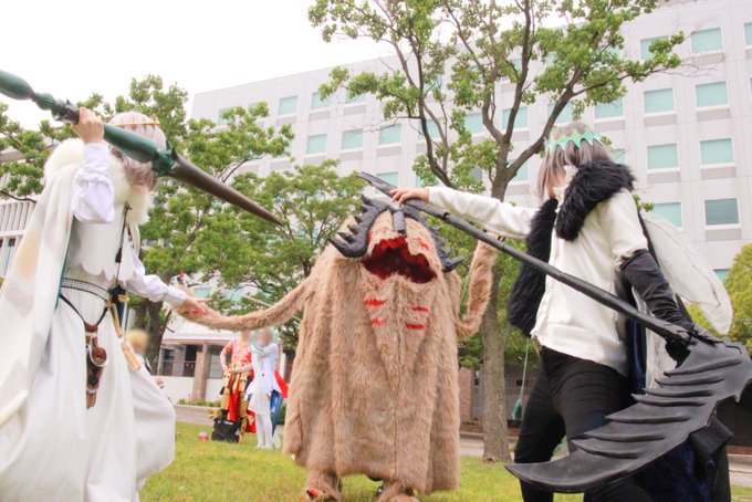 Cosplay ケルヌンノスに挑むオベロン2騎 凄くいい感じに撮影できてよかった☺️ ケルヌンノス: @fishsort_Fire オベロン第2再臨:自分(@RinaScarlet495 ) photo:@towa98 #第一次コス博聖杯戦争