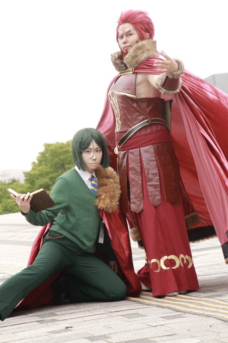 【Cosplay*/FateZero】 「おぉ?何やらあちらで戦が始まった様だぞ坊主♪」 「ばかばかばか!!僕は嫌だぞ!!なんで巻き込まれなくていい戦いに首を突っ込むんだお前はぁぁぁぁ😭😭😭」 ライダー:安積 ウェイバー:きょん 📷:みきんぐさん(@miking41kt) #第一次コス博聖杯戦争