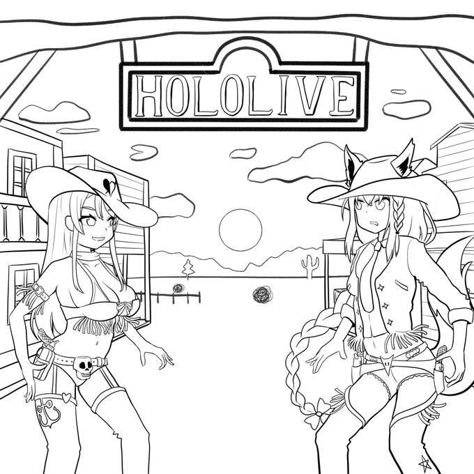 第二回もかんりんまるさんと同じチームでした 荒野で出会ってしまったマリフブとの事で、西部劇を参考に具体化してみました 楽しかったです ラフ→@surabudon730 線画(これ)→えすきー 塗り→@FJ20enginepower #第二回一味お絵描きリレー #マリンのお宝