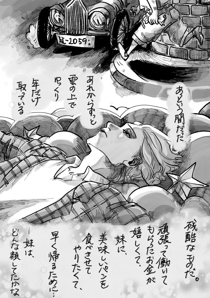 #第20回くらツイ漫画賞 #漫画が読めるハッシュタグ #創作漫画 なぜか天国に行きそびれてしまった彼 とその過去。 全8Pです。 後半4Pは繋げてあります☺︎ あまり漫画らしくない表現ですが興味を持って下さったら嬉しいです☺︎ +