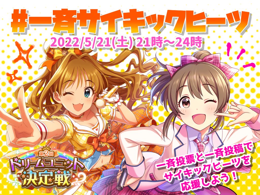 【一斉投票・一斉投稿告知】 日野茜、堀裕子のユニット、 サイキックヒーツの一斉投稿企画を開催します!!✨ 5/21(土)21時〜24時 下記のタグを付けて投票・投稿してサイキックヒーツを応援しましょう!!🥄🔥 #一斉サイキックヒーツ #第2回ドリームユニット決定戦