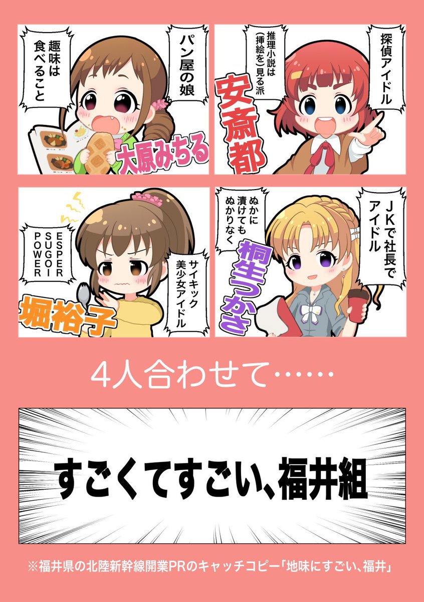 新しい絵が間に合いそうにないので過去絵ですが #デレマス観光大使 で紹介された福井県出身組にユニット化して欲しい!ので応援よろしくお願いします! #第2回ドリームユニット決定戦 #すごくてすごいぞデレマス福井組