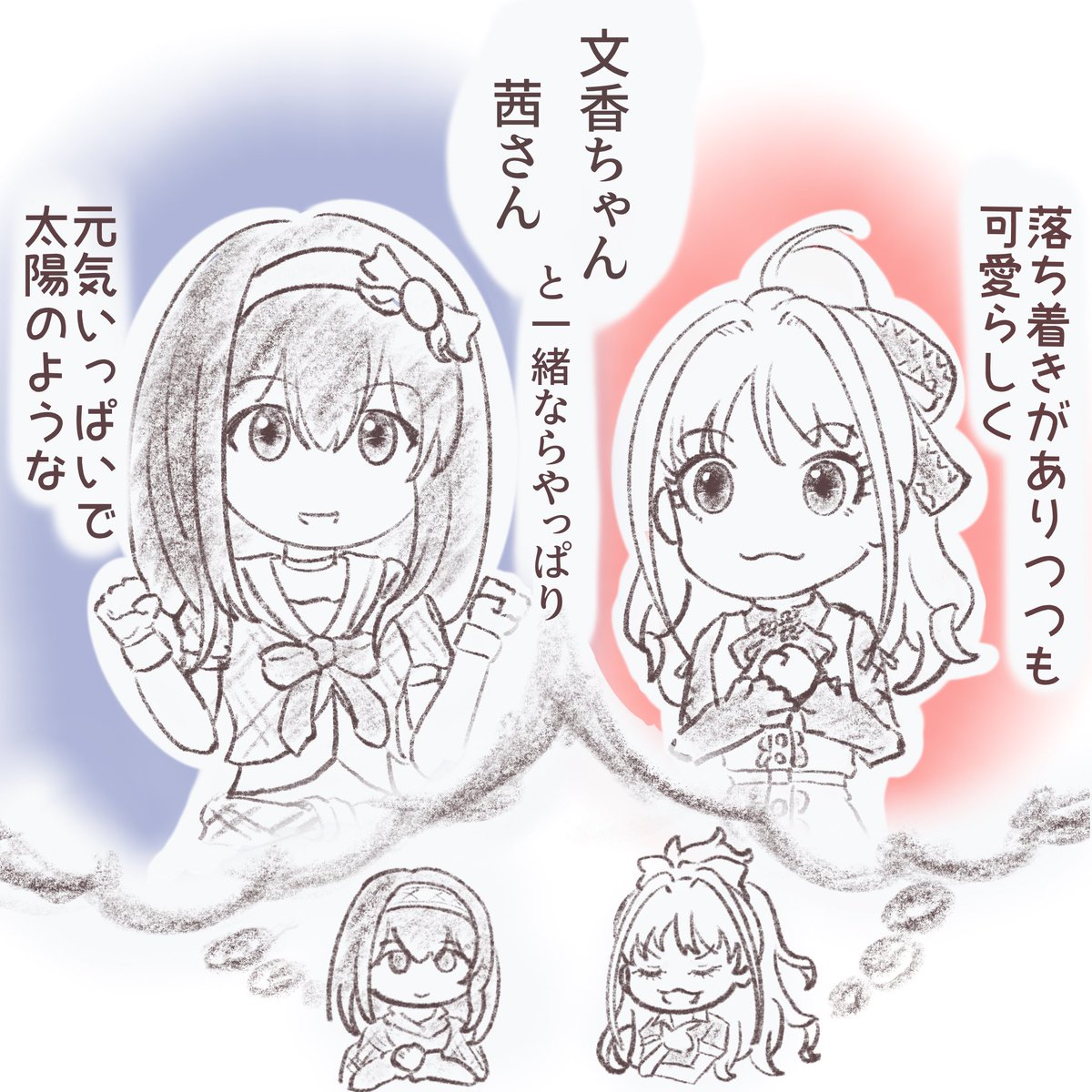 ふみあかおめでとー! シンデレラを象徴する24という数字の順位に選ばれた!すごい!えらい!! 文香ちゃん・投票した人ありがとう!!!! おかげで初めて選挙上位にいる担当が見れました… #第2回ドリームユニット決定戦