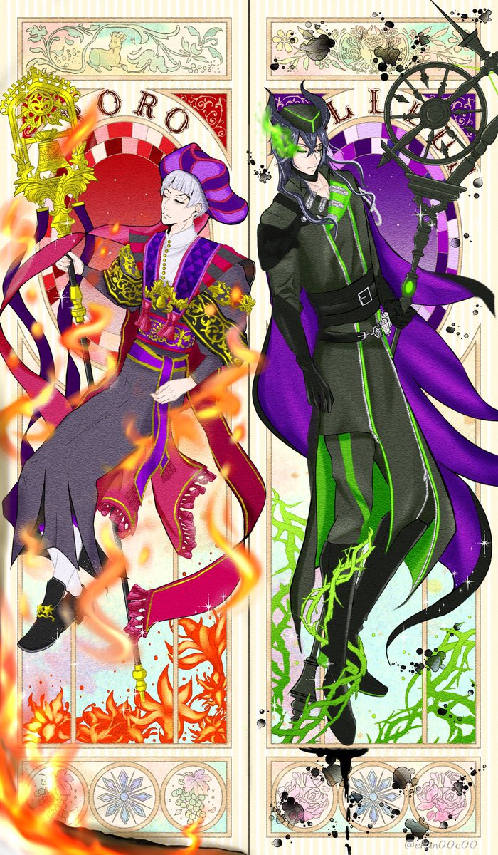 #第5回twstミュシャ企画 『 理想の世界へ 』 素敵な企画にロロ&マレウスで参加致しました!上記タグから素敵な作品が沢山見れますよ~!😊✨️ #ツイステファンアート #twstファンアート