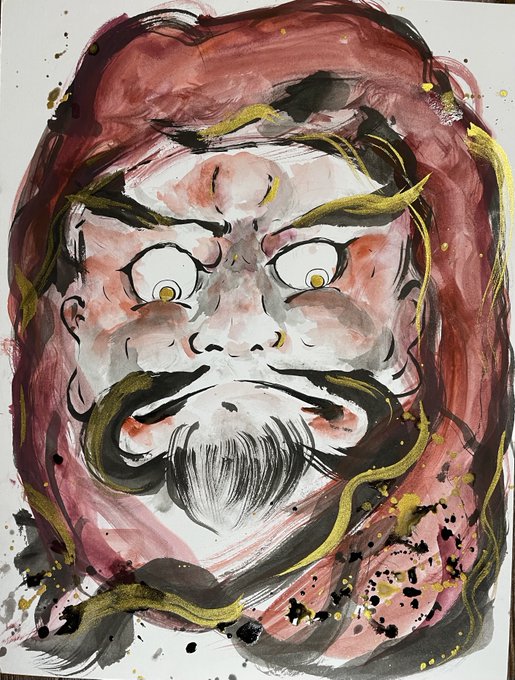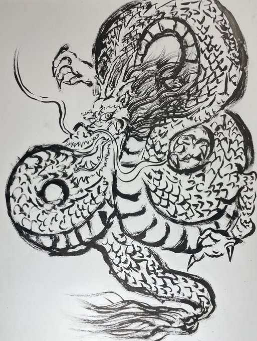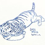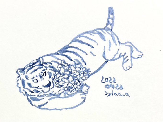 4月22日 虎のように怖い御人から描いてと言われ怯えつ描く。昨日に続きこちらもおめでとう💐 #筆画 #ペン画 #inkdrawing #トラ #絵 まとめ▶︎ twitter.com/i/events/15108…
