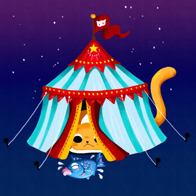 サーカスみたいにハラハラドキドキの連続です。「きっとうまくいくわ」なんて綱渡りみたいに。 #ネコキャット #猫と仕事とまた仕事と #予定通りには決していかない #筋肉少女帯 #サンフランシスコ #フリーランス #グラフィックデザイン #イラスト #illustration