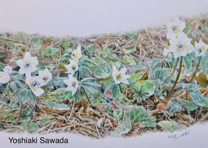 水彩画「森の小人が微笑んだ」SM 先月、初めて節分草を見ることができました。小さくてとても可愛らしい花で、すぐそこまで来ている春に微笑んでいるようでした。 #水彩画 #透明水彩 #自然 #節分草 #新城市 #石雲寺 #watercolor #watercolorpainting #aquarelle #art #paint #painting #gallery
