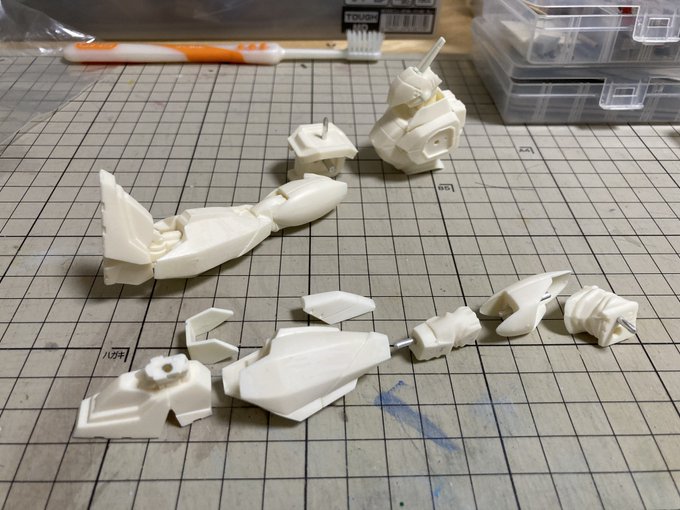 約1ヶ月ぶりの再開 とりあえず何も考えずに手を動かすことにした エコノミーの時に塗膜剥離があったので念を入れて最後にも一度クレンザーで洗う 超音波洗浄機持ってる人 あると便利ですかね。 #パトレイバー模型部 #篠原重工八王子工場