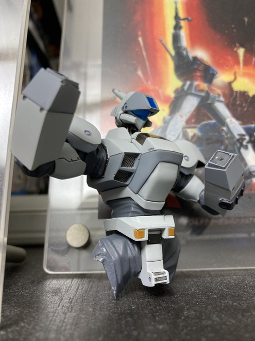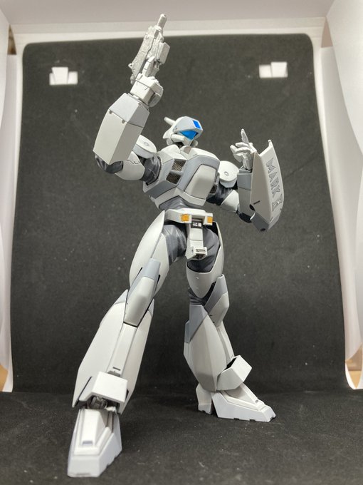 @kaerutarouko さん原型のスタンダード遂に完成 シールドは単行本12巻の訓練中の仕様を自作して差し替え式に カラリングも漫画版を参考に明るめのグレーでアレンジ 満足。 つづく #パトレイバー模型部 #篠原重工八王子工場