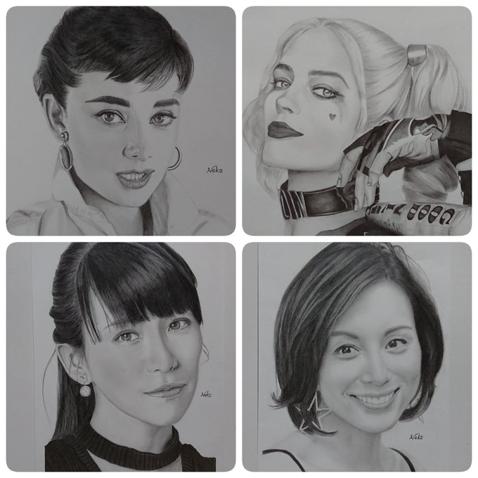#今年も残りわずかなのでお気に入りの4枚を貼る ~女性編॑⸜(* ॑꒳ ॑* )⸝⋆*キラキラ✨✨ タグお借りします<(_ _*)> #鉛筆画 #シャーペン画 #模写 #似顔絵 #オードリー・ヘップバーン #マーゴット・ロビー #西脇綾香 #米倉涼子 #みんなで楽しむTwitter展覧会