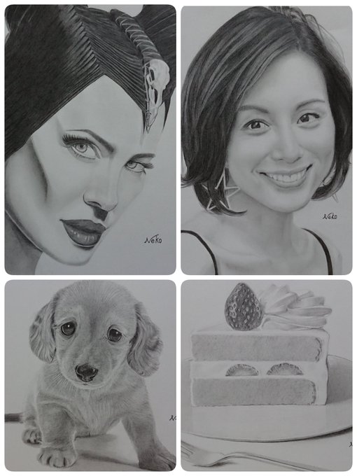 #みなさん去年の今頃はどんな絵描いてましたか おはようございます(*´▽`)ノノ 今日も仕事✧ ٩( ๑•̀o•́๑ )وガンバルゾー 行ってきます(。・ω・)ノ゙ #いつもありがとうございます #鉛筆画 #シャーペン画 #模写 #過去絵 #アンジェリーナ・ジョリー #米倉涼子 #犬 #ショートケーキ