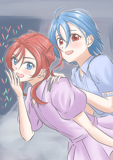 めいくぅアロハ!🤙(挨拶) 最初全然気づかなかったんですがメイさんお団子だったのでドルオタコンビで描きました たのしい! #米女メイ #唐可可 twitter.com/i/web/status/1…