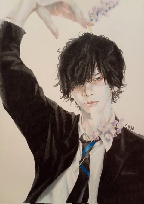 Ayumさんからのリクエストで、米津さん×藤の花を、しぃさんに教えてもらったコクヨのスケブに色鉛筆で描きました🙏 元の紙の色も色の乗り方も違うから研究します(*ノェノ) #米津玄師 #米津玄師ファンアート #色鉛筆画