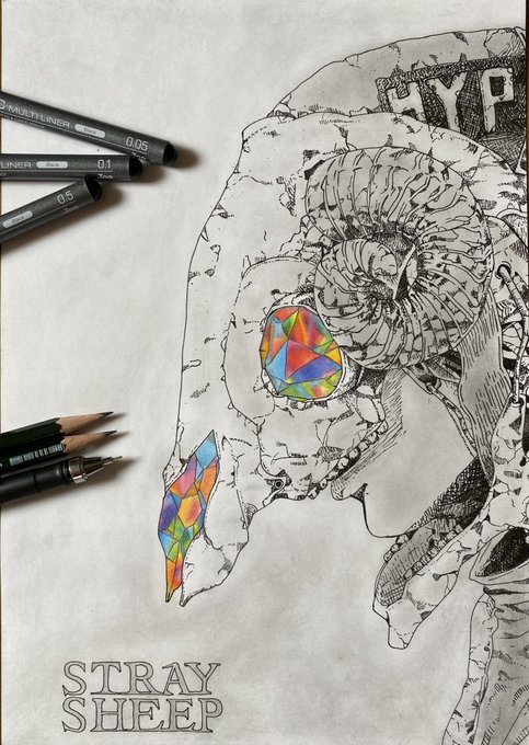 STRAY SHEEP描きました🐑 2次では当たるといいな #米津玄師 #米津玄師2022TOUR変身 #STRAYSHEEP #米津玄師好きと繋がりたい #イラスト好きと繋がりたい #イラスト #模写 #色鉛筆画