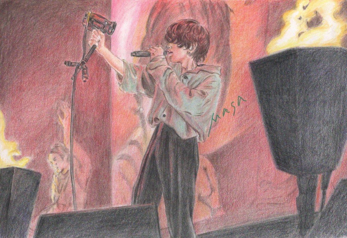 変身、素晴らしかったですね お写真もどれも素敵すぎてアートだな 円盤お願いします(((* ॑꒳ ॑* ≡ * ॑꒳ ॑* ))) #米津玄師2022TOUR変身 #色鉛筆画 #模写 #KICKBACK_米津玄師