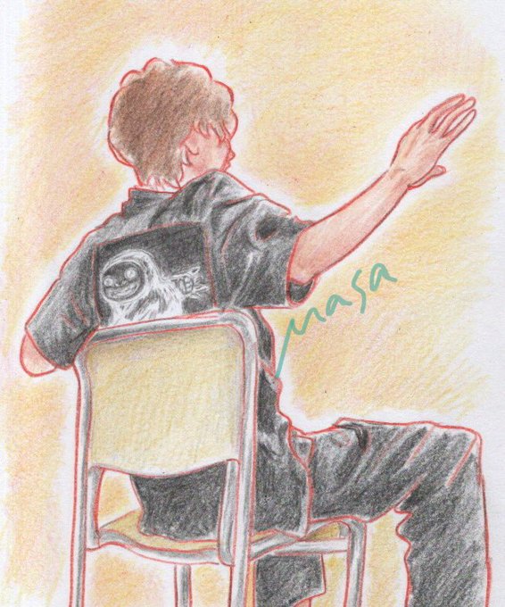 今日も⸜(˙◁˙)⸝✐☡ラクガキ ฅ( ꕕ ټ ꕕ )ฅTシャツ着てるとこを見せてくれてうれしかったね🤭 #KICKBACK_米津玄師 #米津玄師2022TOUR変身 #色鉛筆画 #ファンアート
