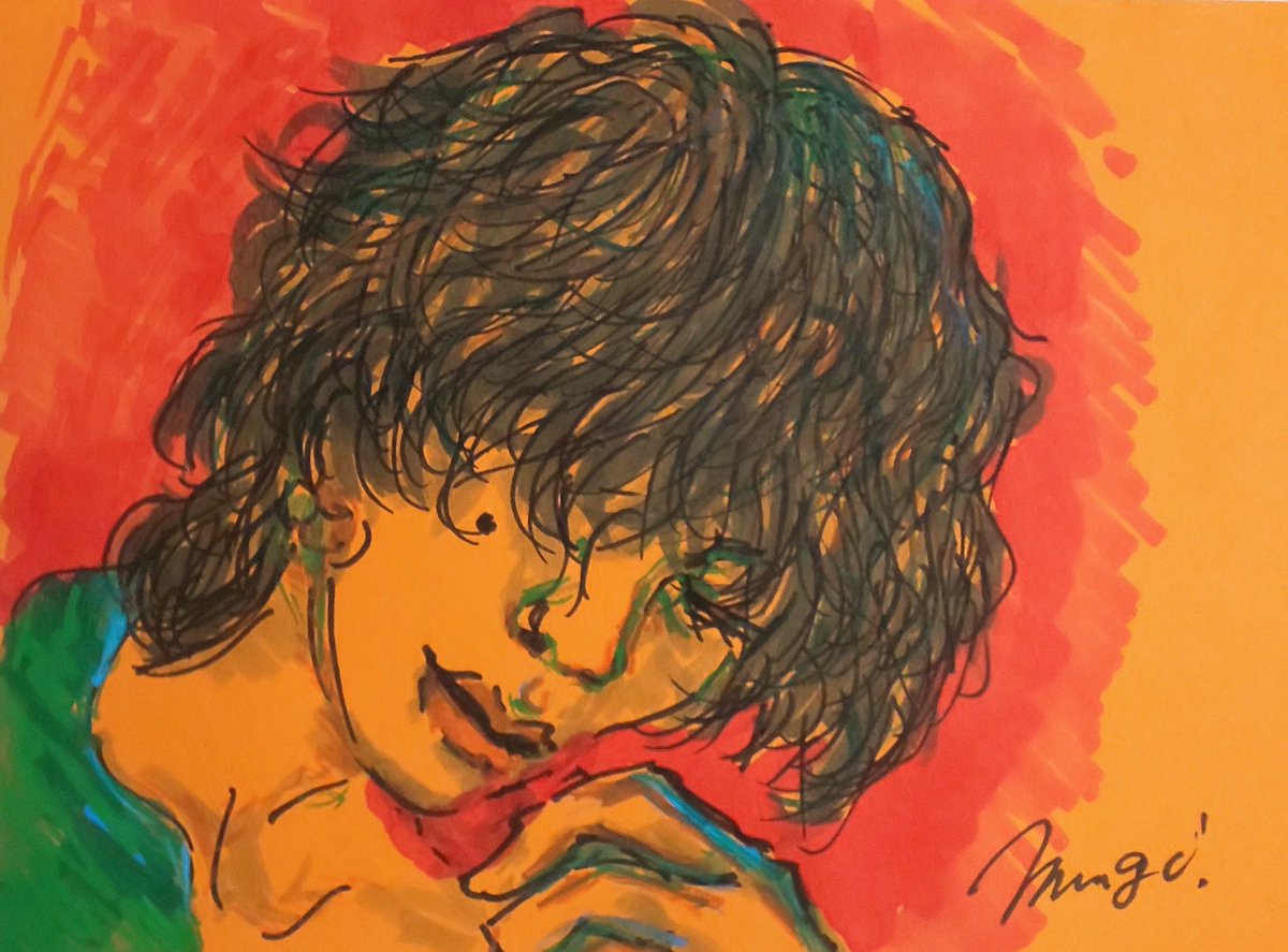 #KICKBACK_米津玄師 #米津玄師2022TOUR変身 たまアリLIVE映像より。 なんか色々と目が釘付け😳になった瞬間を描かせて頂きました。 オレンジ色の画用紙に、ペイントマーカー、アルコールマーカーで。今回は一発描きです🤭 #PILOTジュースペイント #模写 #イメージイラスト #イラスト