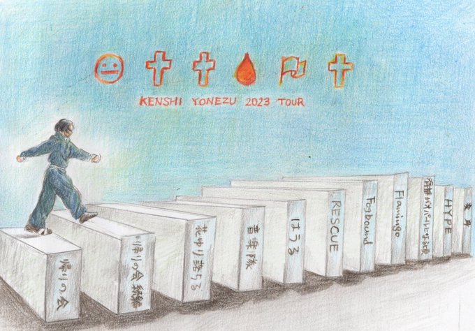ライブで渡す用のステッカーできました! あとは印刷だけ! 一人に1枚ずつ(余りそうなので複数枚配るかも)配る予定です! 一応過去絵もステッカーにするのでそれの分2枚あるっていう感じです! もし宮城2日目で欲しい方いたらリプください…リスインします…! #米津玄師2023TOUR空想 #米津玄師