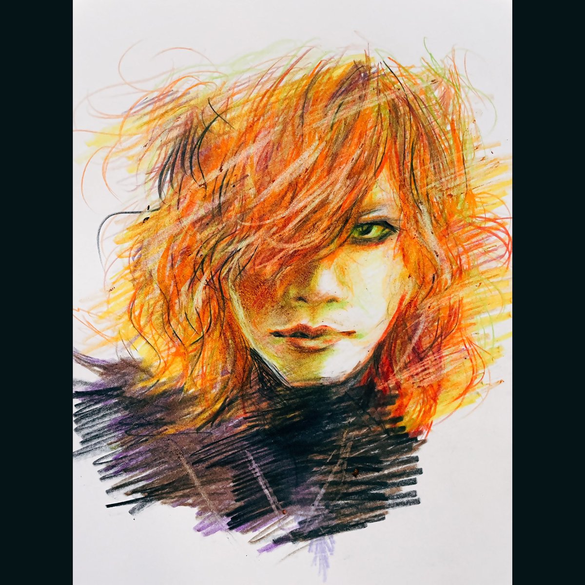 #米津玄師POPSONG 色鉛筆で描きました 今日、黒髪になって スンッ( ˙꒳˙ )と登場した推しですが 脳が上手く認識出来なかったらしく 😂 しばらく混乱してました どの髪型でも色でもいいけど 今はこのPOPSONG玄師さまが 大好き♥