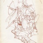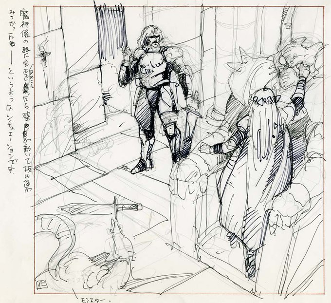 実はソーサリアンの前に、ザナドゥの絵を描いた(JICC出版の攻略本)のがファルコムさんとの付き合いの始まりでした。 このラフも出てきましたのでアップしておきます。完成した絵の方は多分東京の仕事場にあります。😁 #illustration #イラスト #HitoshiYoneda #米田仁士 #Watercolor #水彩画