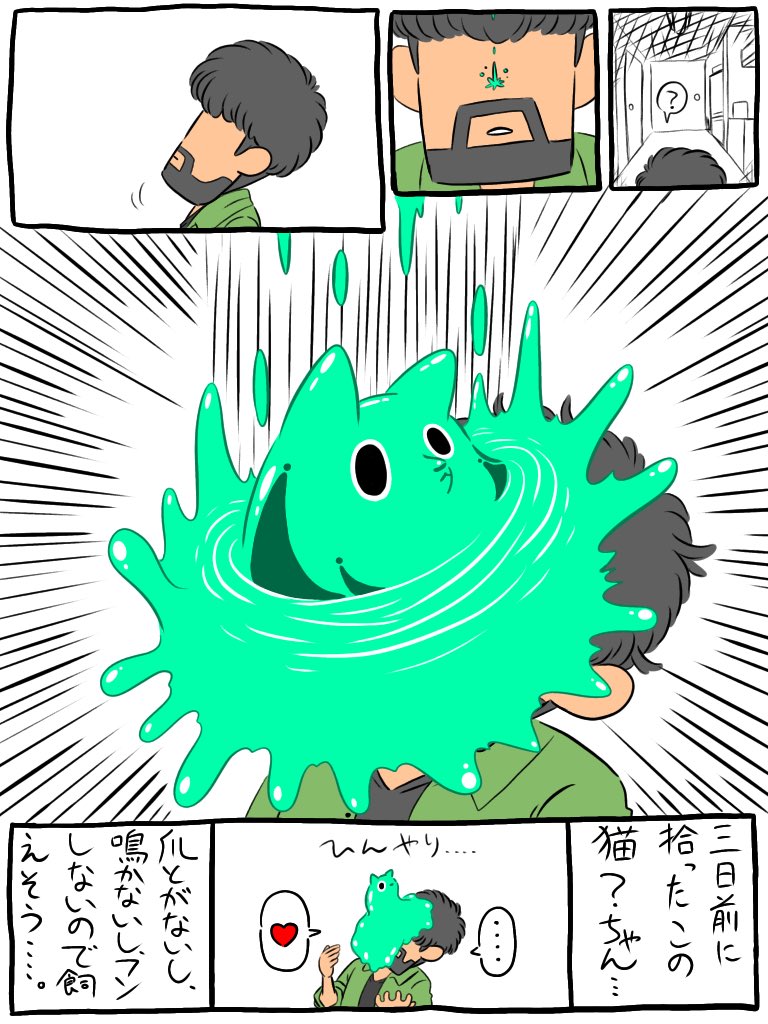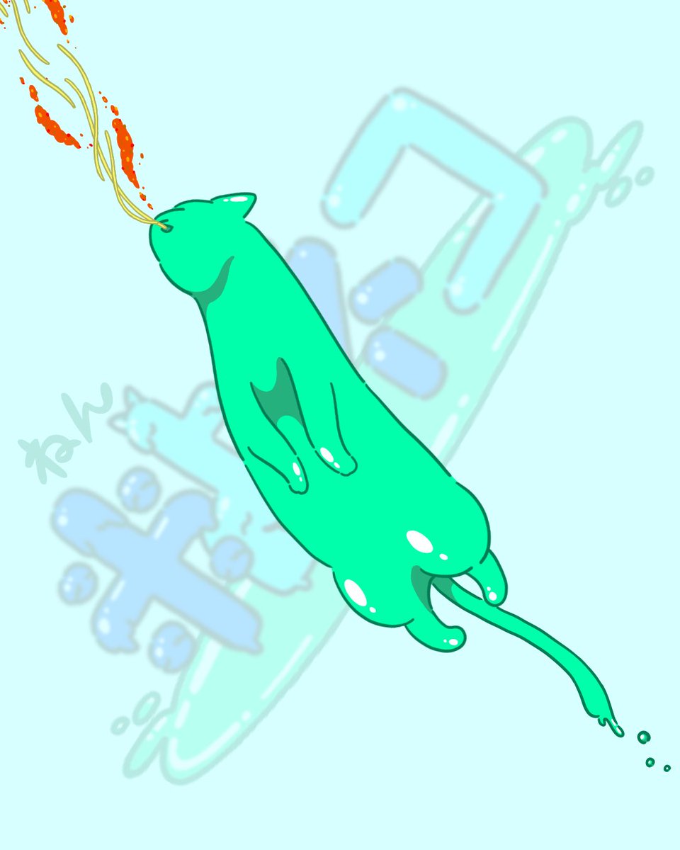 こんばんは! 今日も暑かったですね! 明日の台風大丈夫でしょうか… 明日にならないと分かりませんね 粘ネコです! 粘ネコの粘は粘体の粘 要するにスライムキャットですね 居たら飼いたいなぁ… #イラスト好きさんと繋がりたい #漫画が読めるハッシュタグ #粘ネコ #猫飼いたい願望